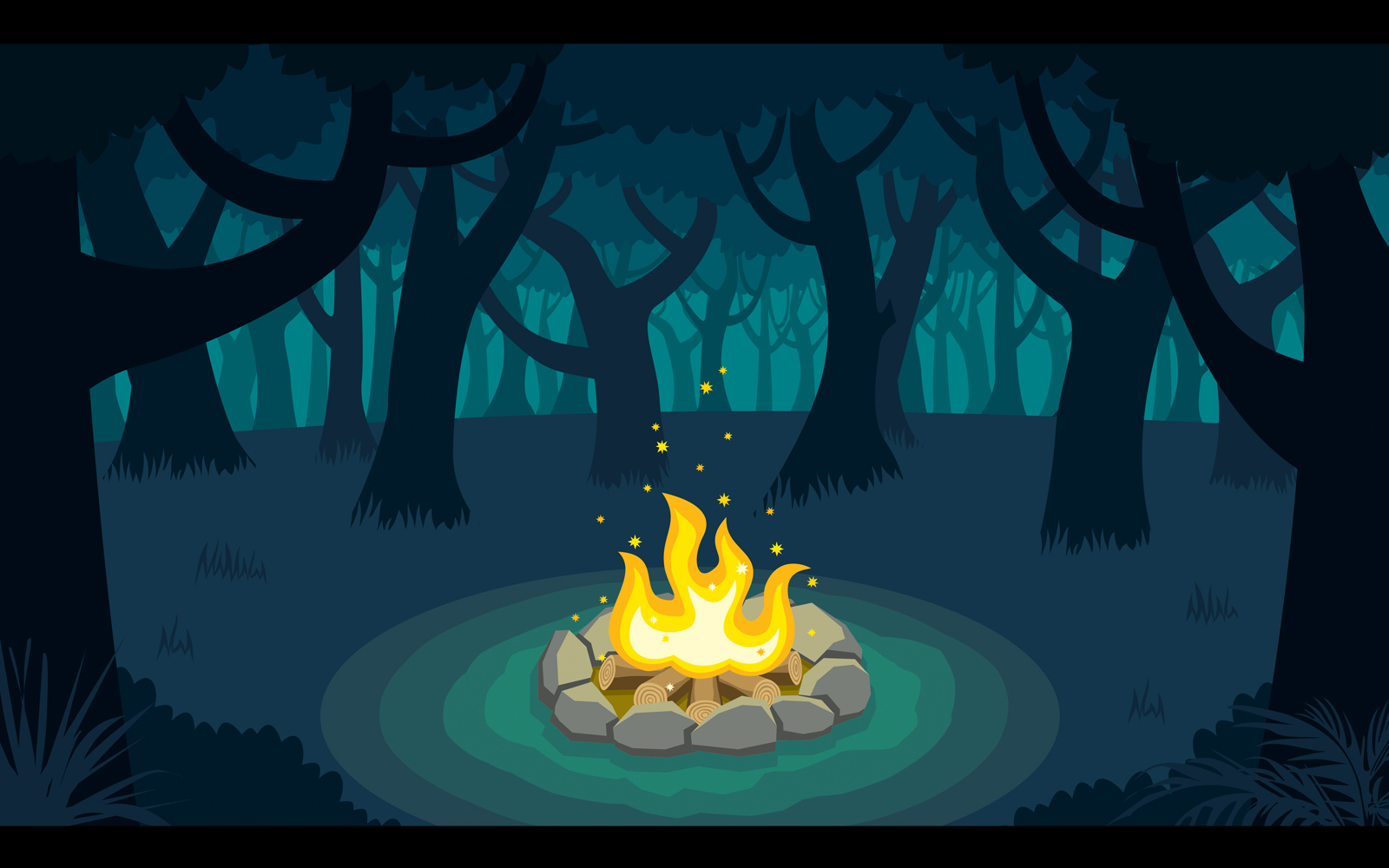 Download Иллюстрация "Forest Campfire - Illustration" / Forest Campfire - Illustration - Иллюстрация на тему графика campfire,bonfire,fire,fireplace,flame,camping,stone,circle,rock,burning,forest,night,tree,outdoor,sparks,firewood,wood,vector,cartoon,illustration