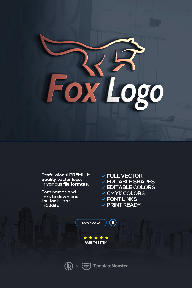 Download Шаблон логотипа "Fox Logo Template" / Fox Logo Template - Шаблон логотипа на тему графика fox,logo,template,editable,forest,wolf,animal,custom