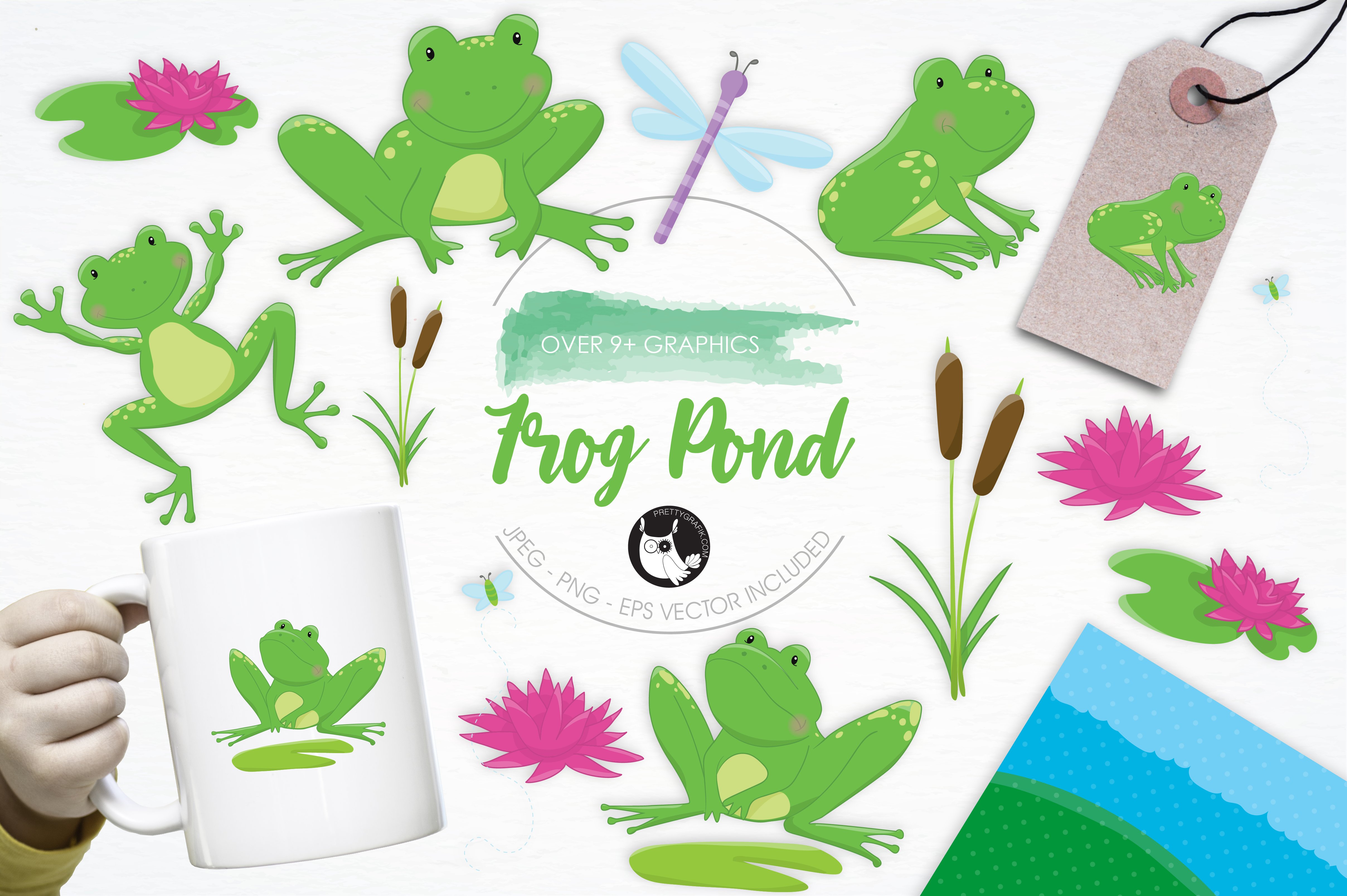 Download Vector "Frog Pond illustration pack - Vector Image" / Frog Pond illustration pack - Vector Image - Vector на тему графика illustration,vector,graphics,clipart,clip art,green,animals,icon,lotus,pond,eps,prettygrafik,frog pond,frogs,dragonfly