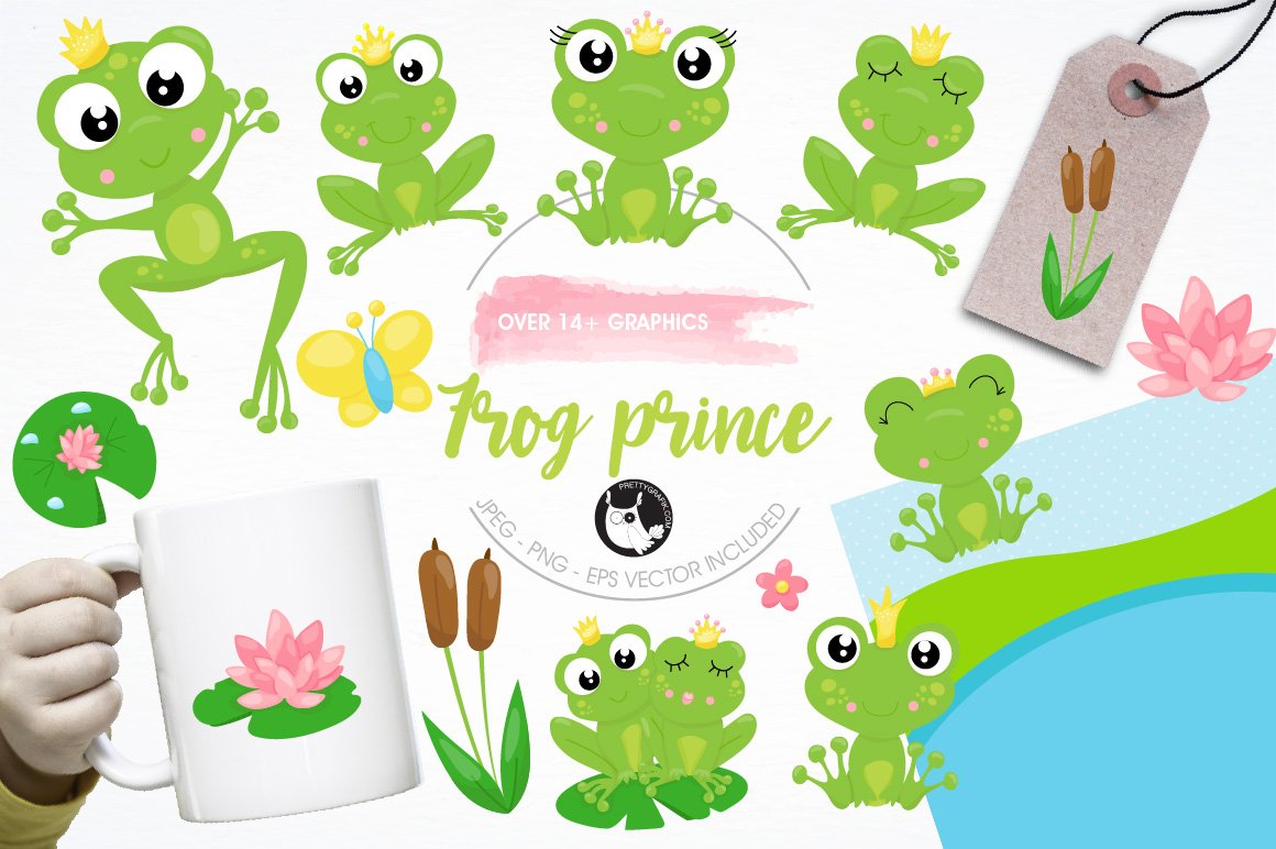 Download Vector "Frog prince illustration pack - Vector Image" / Frog prince illustration pack - Vector Image - Vector на тему графика illustration,vector,graphics,clipart,clip art,icons,eps,amphibian,prettygrafik,frog,prince,cattails,lily pads