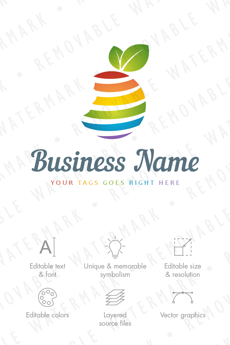 Download Шаблон логотипа "Fruit Globe Logo Template" / Fruit Globe Logo Template - Шаблон логотипа на тему графика globe world global food apple fruit colorful sphere planet grow belt zone eaten eat organic farm logo design template travel
