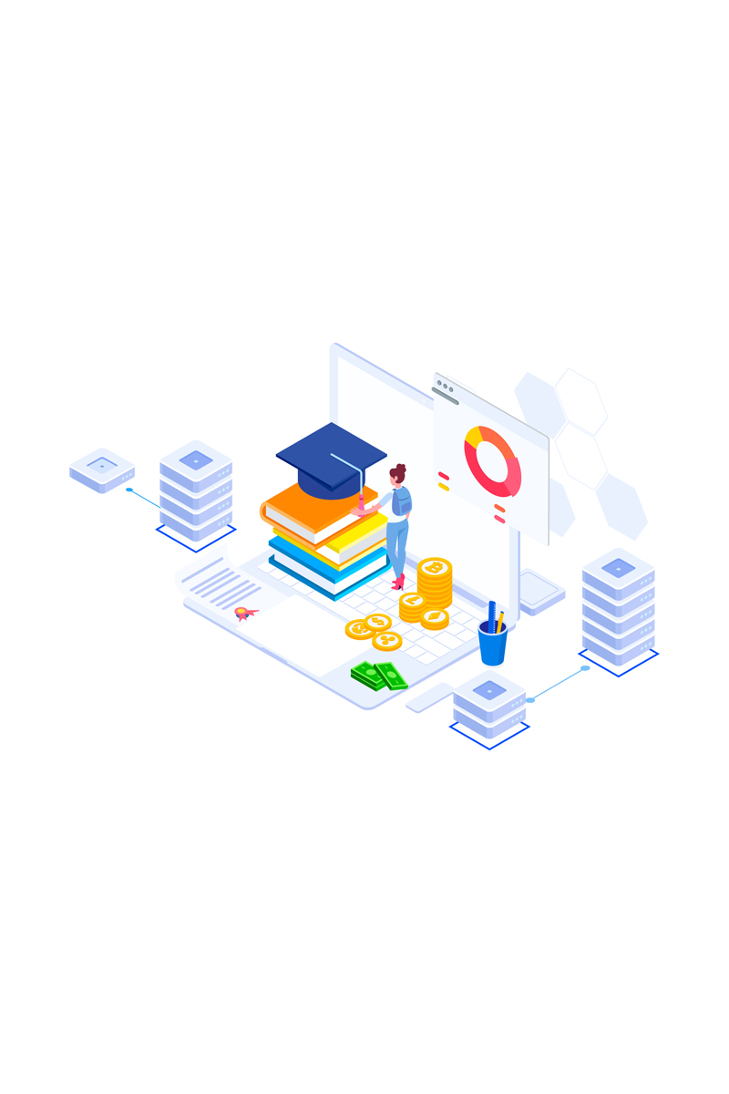 Download Иллюстрация "Fund higher education 4 - Illustration" / Fund higher education 4 - Illustration - Иллюстрация на тему графика isometric illustration blockchain platform finance report chart analysis growth device laptop bussiness strategy people design.
