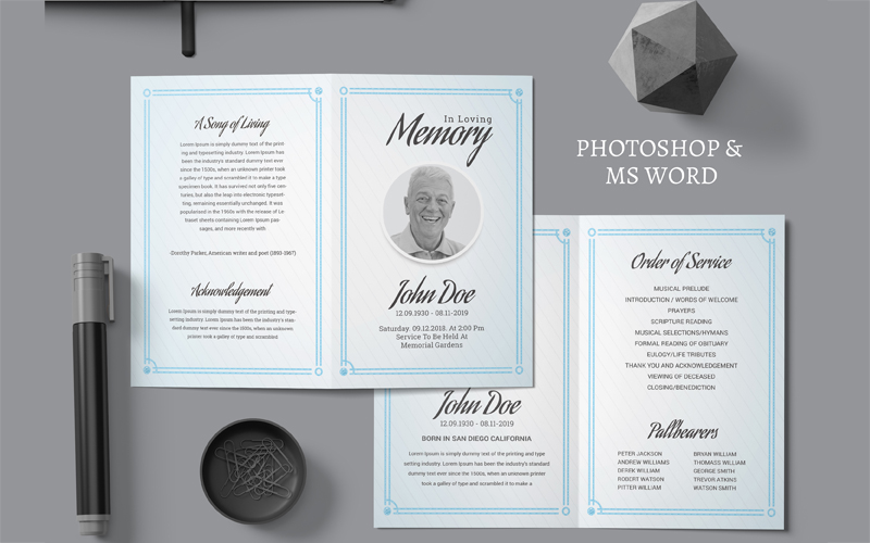 Download Фирменный стиль "Funeral Program - Corporate Identity Template" / Funeral Program - Corporate Identity Template - Фирменный стиль на тему графика funeral,program,template,brochure,memorial,service,obituary,programs,floral,church,order,of,printable
