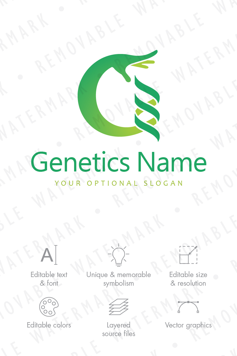 Download Шаблон логотипа "G Genetics Logo Template" / G Genetics Logo Template - Шаблон логотипа на тему графика science chemistry hand dna genetics helix letter g healing manipulation research medicine modification innovation lab human biotechnology logo design template