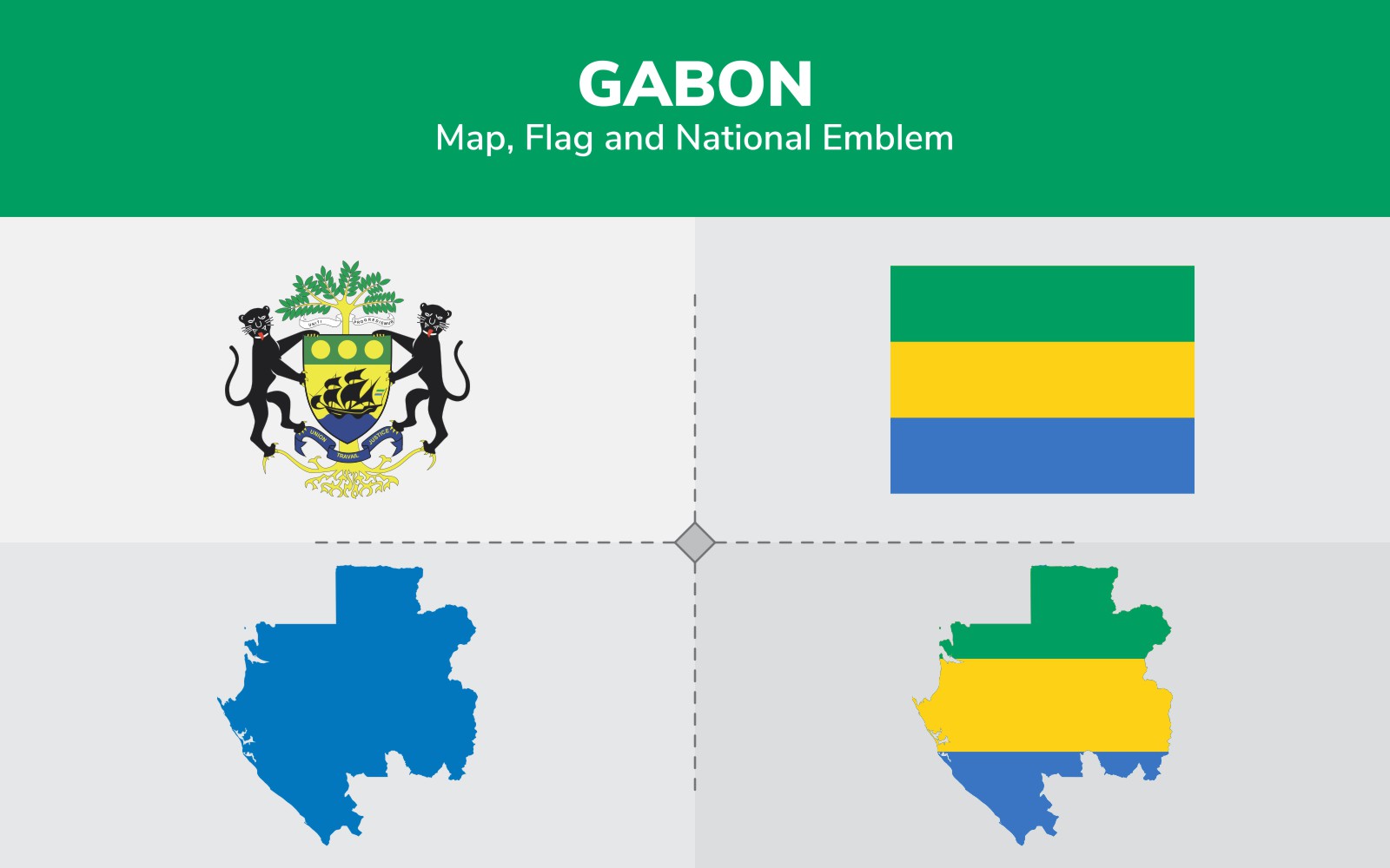 Download Иллюстрация "Gabon Map, Flag and National Emblem - Illustration" / Gabon Map, Flag and National Emblem - Illustration - Иллюстрация на тему графика continents,countries,map,political map,traveling,vector,emblem,national,flag,coat,arms,country,symbol,nations,state,sign,nation,badge,symbolic object,europe