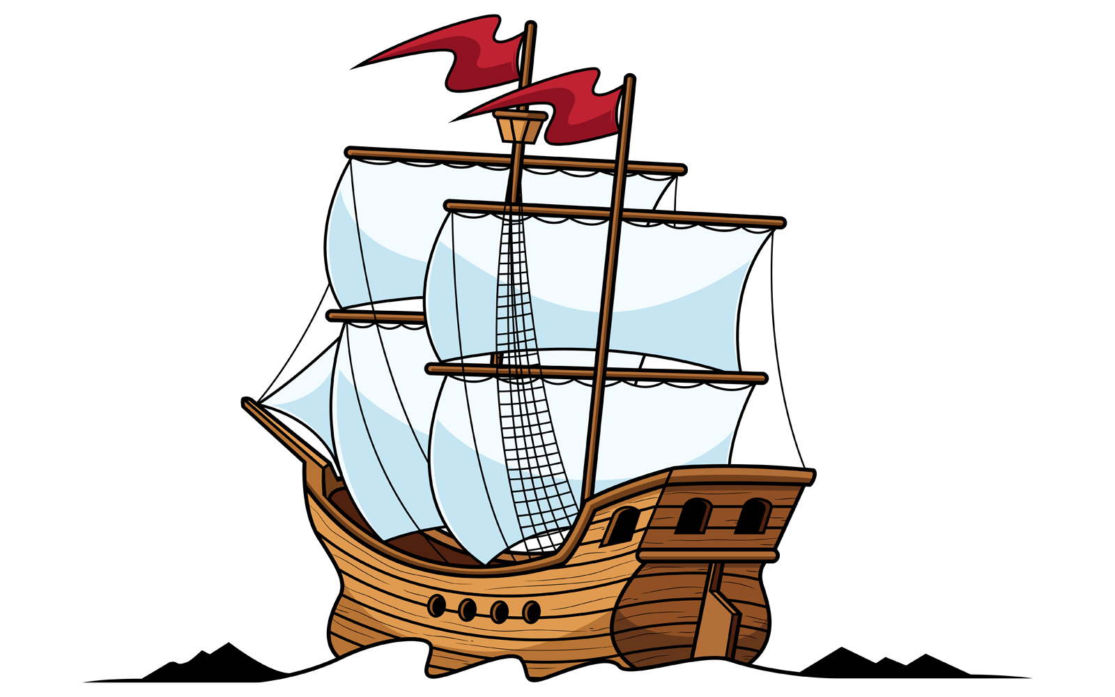Download Иллюстрация "Galleon Mascot - Illustration" / Galleon Mascot - Illustration - Иллюстрация на тему графика caravel,galleon,sailboat,sailing ship,sail,ship,background,landscape,mascot,logo,sailing,cruise,travel,adventure,voyage,journey,nautical vessel,flag,renaissance,sea