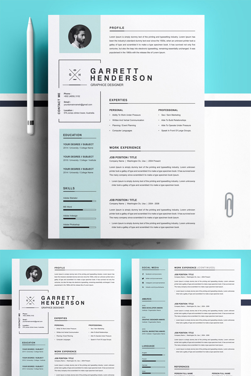 Download Резюме "Garret Henderson Resume Template" / Garret Henderson Resume Template - Резюме на тему графика resume template cv modern teacher cover letter creative minimal word 2 page clean professional a4 us for design vc docx