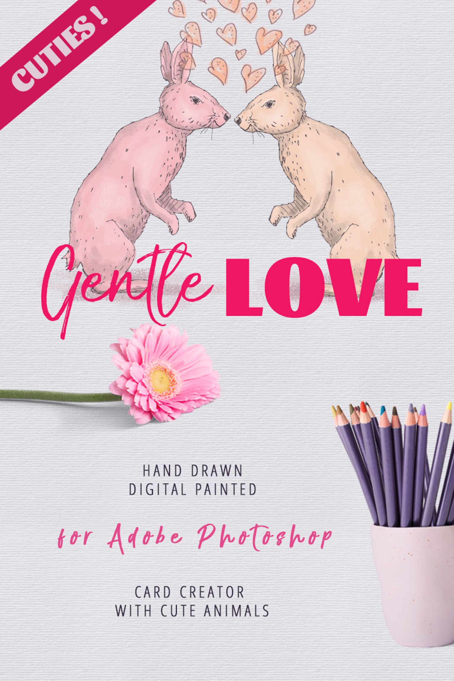 Download Иллюстрация "Gentle Love - Card Creator - Illustration" / Gentle Love - Card Creator - Illustration - Иллюстрация на тему графика card love collection set valentine creator cat animal hare rabbit gentle panda cute hand drawn digital stationary fox mouse couple