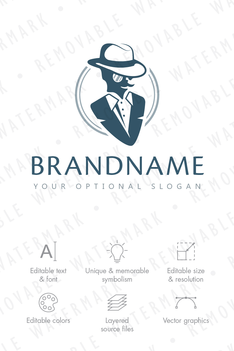 Download Шаблон логотипа "Gentleman Fashion Logo Template" / Gentleman Fashion Logo Template - Шаблон логотипа на тему графика america retro england character fashion man wear clothing suit human hat noble old dress gentleman mafia barber logo design template
