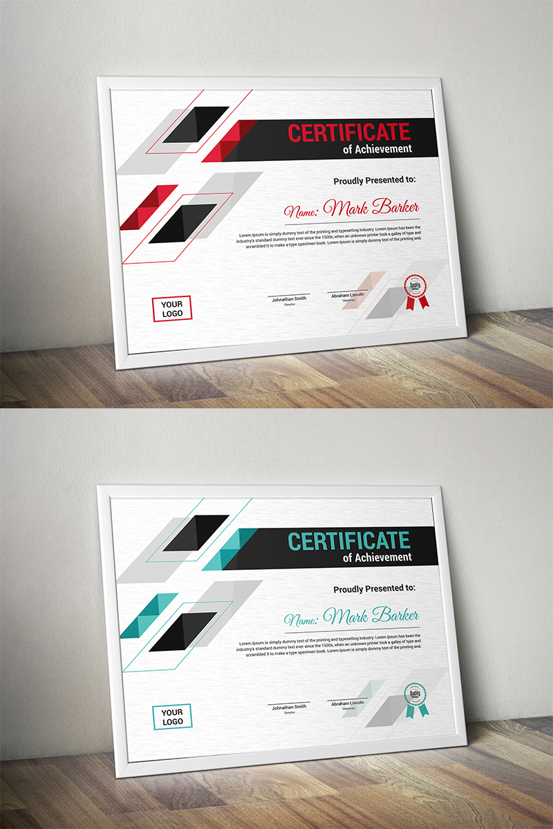 Download Шаблон сертификата "Geometric Certificate Template" / Geometric Certificate Template - Шаблон сертификата на тему графика certificate corporate decorative diploma elegant excellence frame graduation green modern multicolor ornament ornaments paper print ready template professional red simple