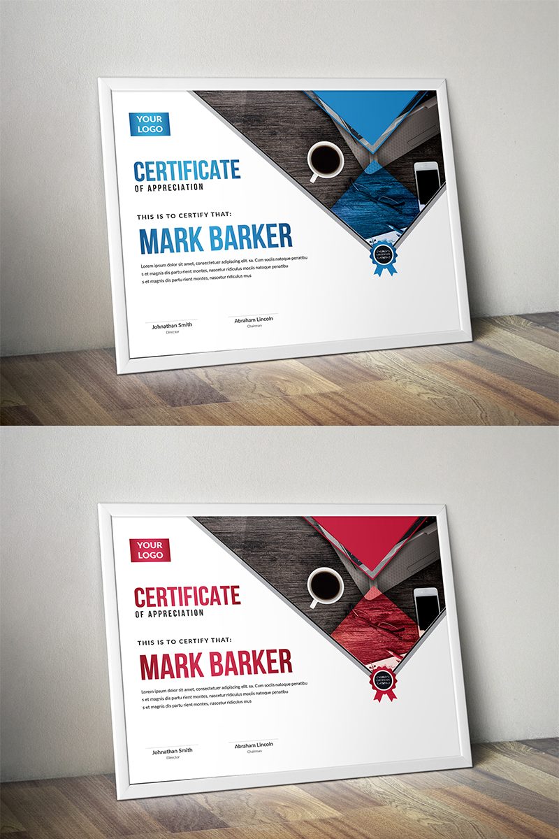 Download Шаблон сертификата "Geometric Modern Certificate Template" / Geometric Modern Certificate Template - Шаблон сертификата на тему графика certificate corporate decorative diploma elegant excellence frame graduation green modern multicolor ornament ornaments paper print ready template professional red simple