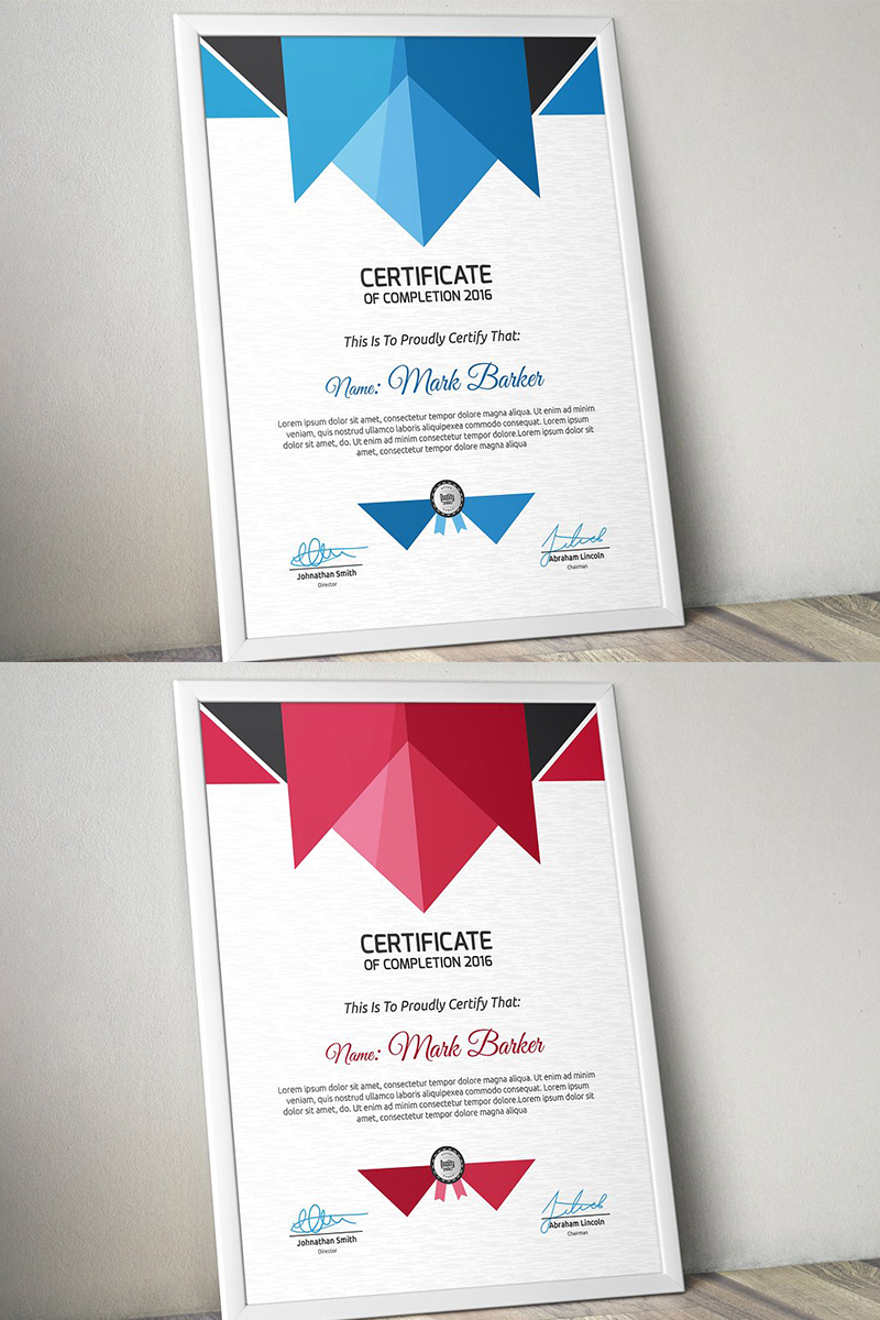 Download Шаблон сертификата "Geometric Portrait Mode Certificate Template" / Geometric Portrait Mode Certificate Template - Шаблон сертификата на тему графика certificate corporate decorative diploma elegant excellence frame graduation green modern multicolor ornament ornaments paper print ready template professional red simple