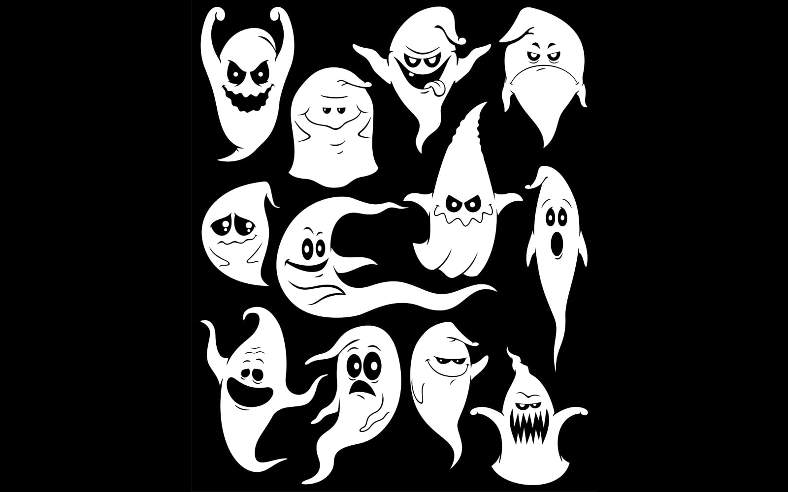 Download Иллюстрация "Ghosts - Illustration" / Ghosts - Illustration - Иллюстрация на тему графика halloween,ghost,spook,poltergeist,spirit,apparition,set,pack,collection,silhouette,isolated,white,black background