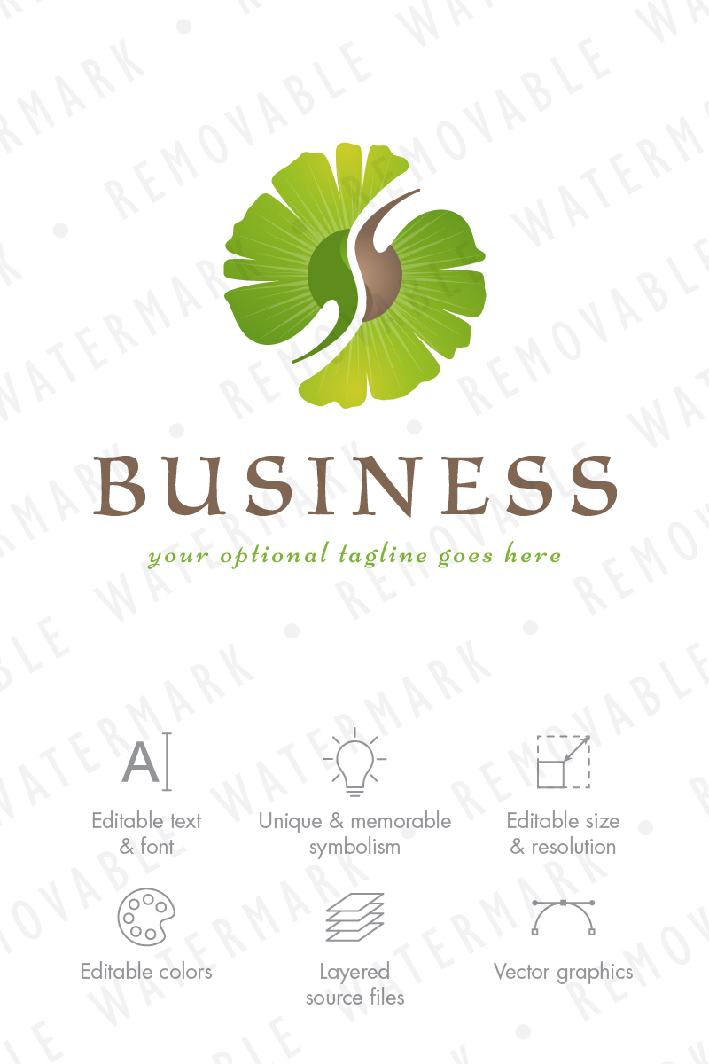 Download Шаблон логотипа "Ginkgo Yin & Yang Logo Template" / Ginkgo Yin & Yang Logo Template - Шаблон логотипа на тему графика green circle leaf medicine natural organic treatment harmony balance yin yang zen cure healing chinese herb ginkgo logo design template