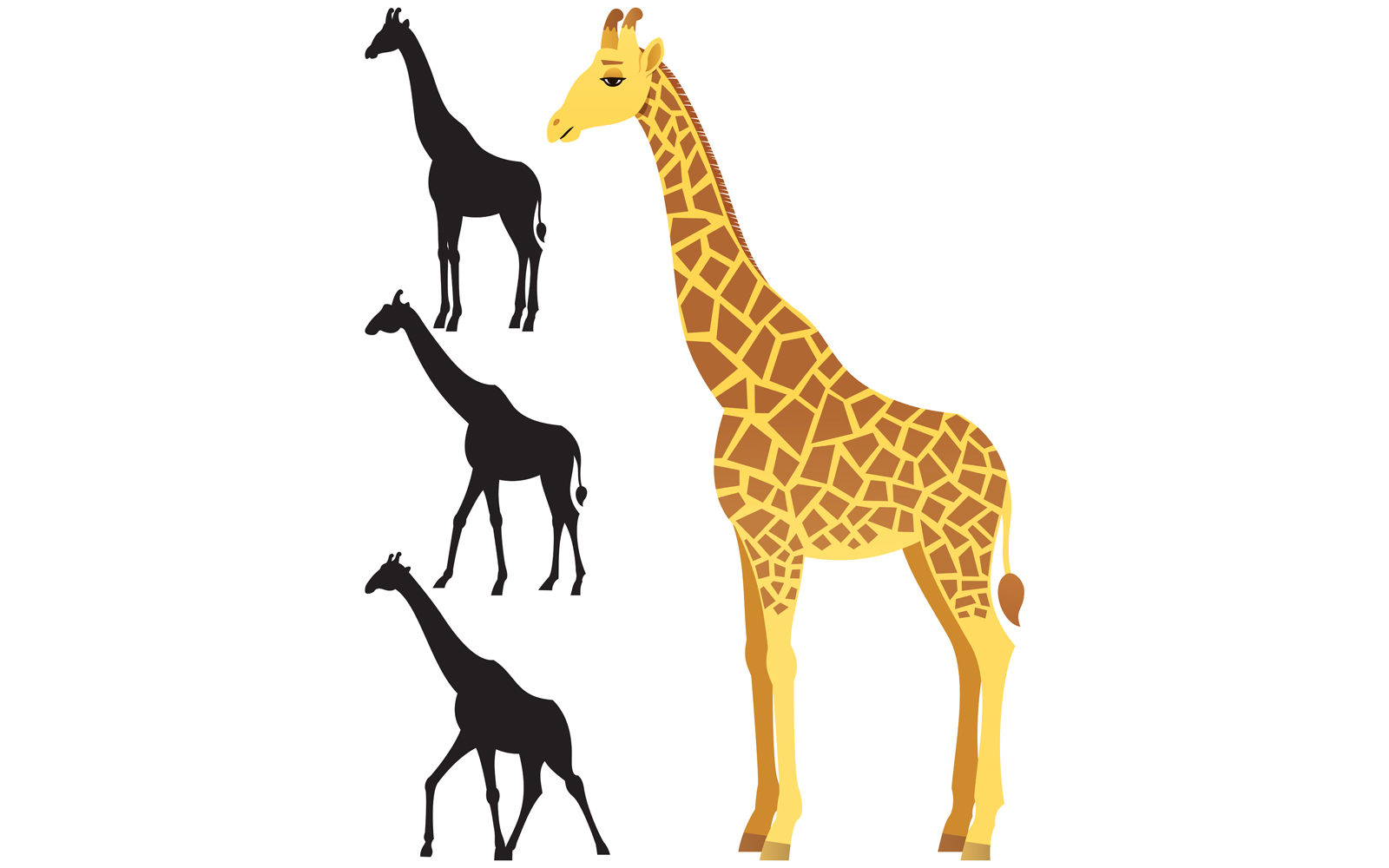 Download Иллюстрация "Giraffe - Illustration" / Giraffe - Illustration - Иллюстрация на тему графика giraffe,animal,wild,mammal,african,africa,safari,nature,silhouette,isolated,white,background,cartoon,illustration,vector,clip art,clipart,design element