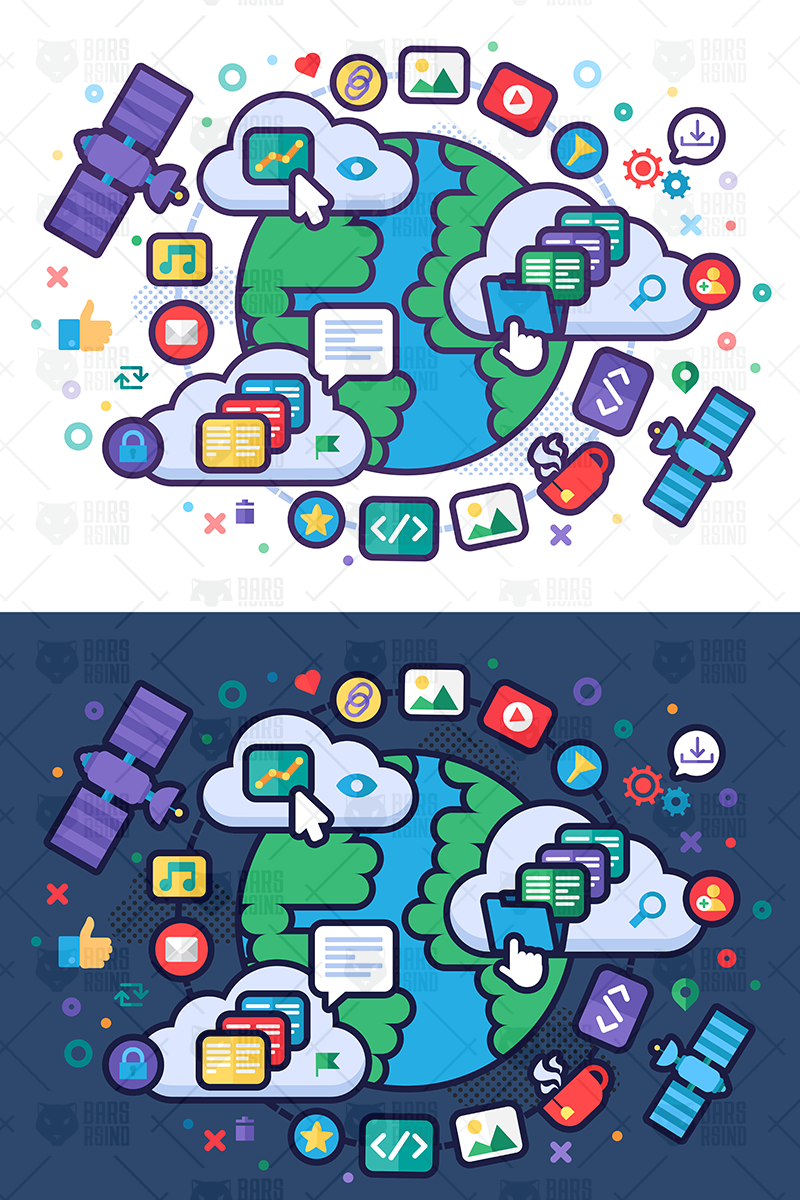 Download Иллюстрация "Global Network Concept - Illustration" / Global Network Concept - Illustration - Иллюстрация на тему графика search upload url download files information tech net site server traffic web technology online document image video synchronization backup storage