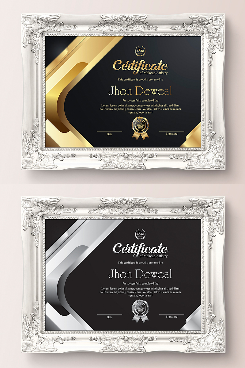 Download Шаблон сертификата "Gold Elegant & Silver Black Certificate Template" / Gold Elegant & Silver Black Certificate Template - Шаблон сертификата на тему графика achievement appreciation award diploma completion acknowledgement certificates eyelash nail extension modern luxury multipurpose professional training red blue gold green yellow