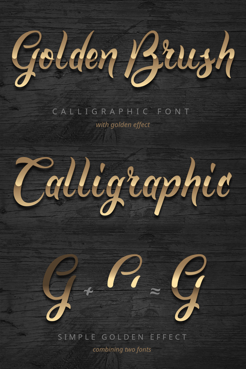 Download Шрифт "Golden Brush Font" / Golden Brush Font - Шрифт на тему графика calligraphy,font,script,abc,alphabet,handwritten,gold,brush,brushpen,shiny,chrome,elegant,glossy,royal,layers,otf,eps,vector,lettering,gradient