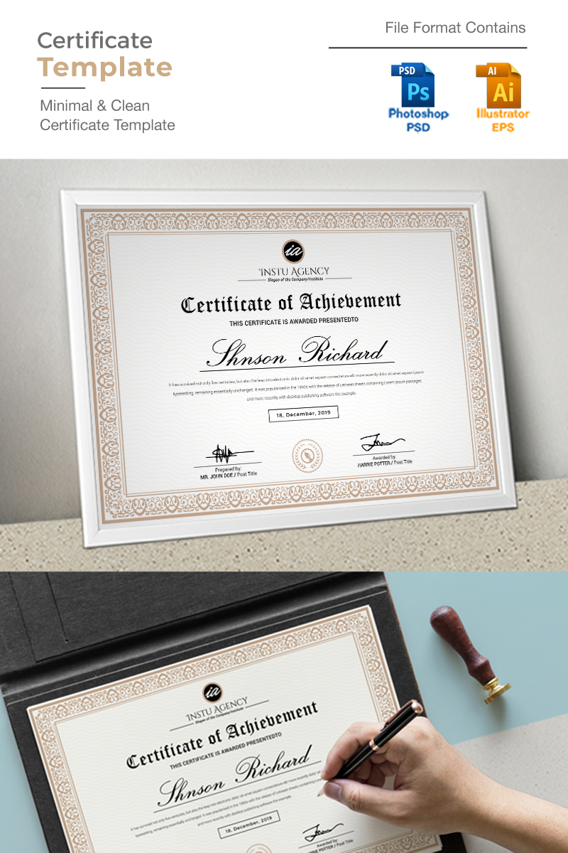 Download Шаблон сертификата "Golden Certificate Template" / Golden Certificate Template - Шаблон сертификата на тему графика modern,certificate,template,award,diploma,design,achievement,luxury,antique,elegant,honor,a4,creative,clean,multipurpose,collage,school,university,golden
