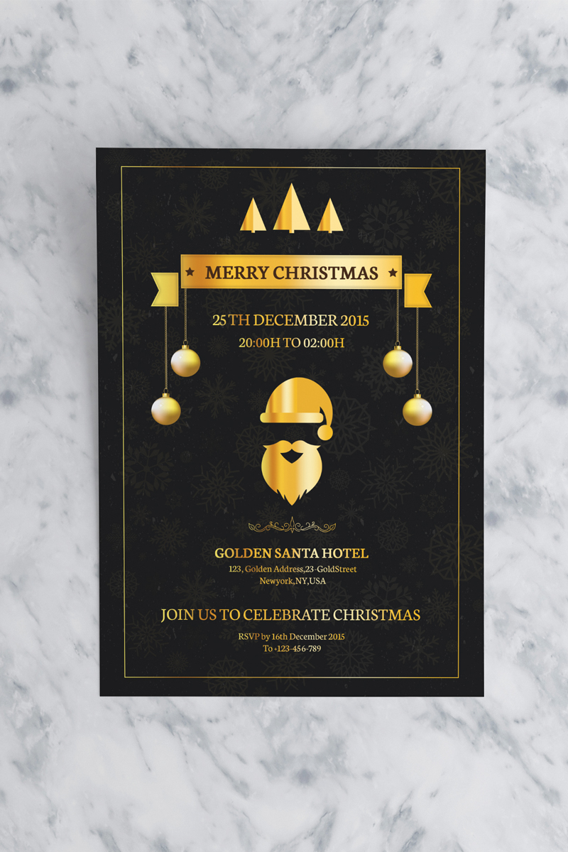 Download Фирменный стиль "Golden Christmas Party Invitation - Corporate Identity Template" / Golden Christmas Party Invitation - Corporate Identity Template - Фирменный стиль на тему графика christmas party creative flyer layout home invitation card invitations & announcements minimal minimalist printable printable psd santa template templates