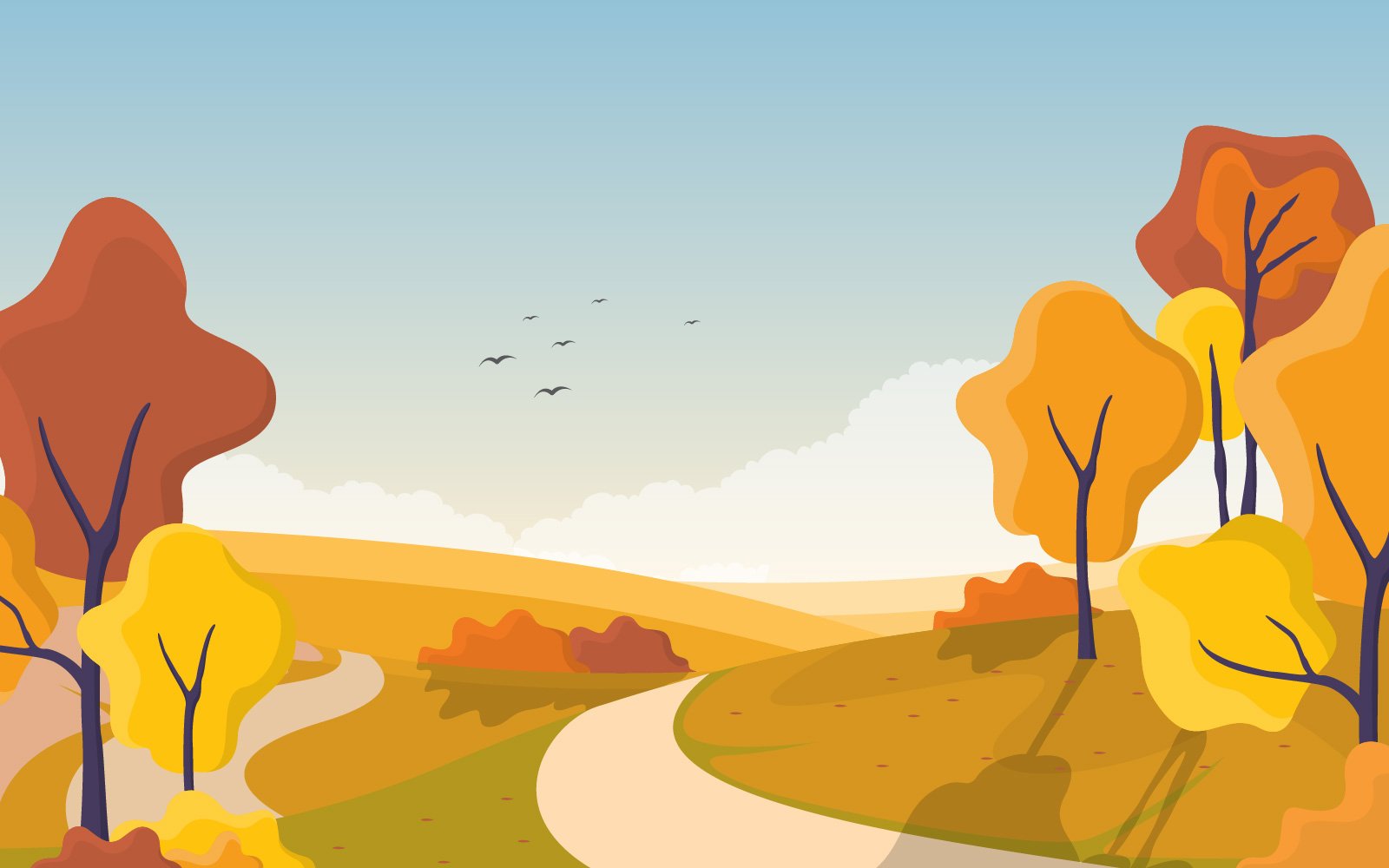 Download Иллюстрация "Golden Tree Landscape - Illustration" / Golden Tree Landscape - Illustration - Иллюстрация на тему графика autumn,fall,season,tree,golden,yellow,nature,panoramic,landscape,illustration,vector,background,scene,garden,environment,bright,forest,park,city,art