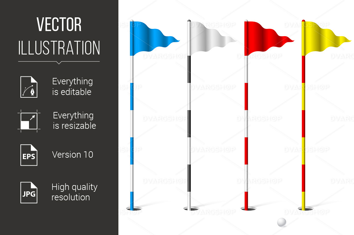 Download Vector "Golf Flags - Vector Image" / Golf Flags - Vector Image - Vector на тему графика flags,illustration,background,white,golf,flag,isolated,course,vector,green,red,hole,blank,grass,eagle,bright,holiday,close,leisure,outdoor
