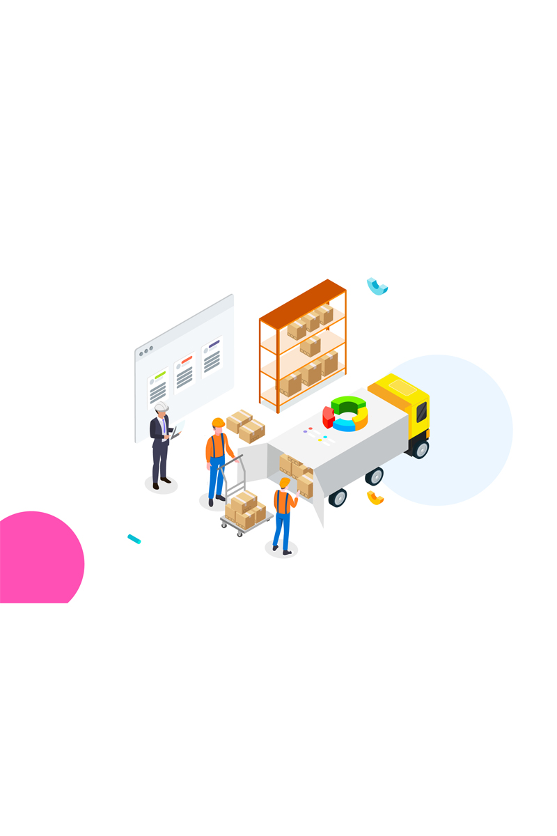 Download Иллюстрация "Goods management 2 - Illustration" / Goods management 2 - Illustration - Иллюстрация на тему графика isometric illustration blockchain platform finance report chart analysis growth device laptop bussiness strategy people design.