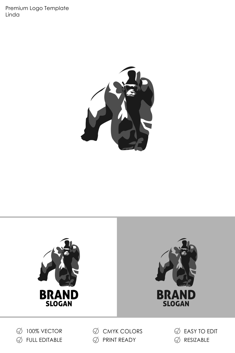 Download Шаблон логотипа "Gorilla Logo Template" / Gorilla Logo Template - Шаблон логотипа на тему графика angry animal ape beast big brand brave chimp club creative design gorilla graphic head icon king kong logo mascot media