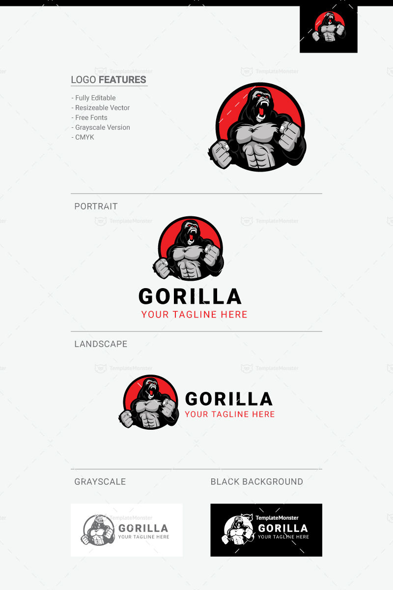 Download Шаблон логотипа "gorilla Logo Template" / gorilla Logo Template - Шаблон логотипа на тему графика angry animal ape beast big brand brave chimp club creative design gorilla graphic head icon king kong logo mascot media