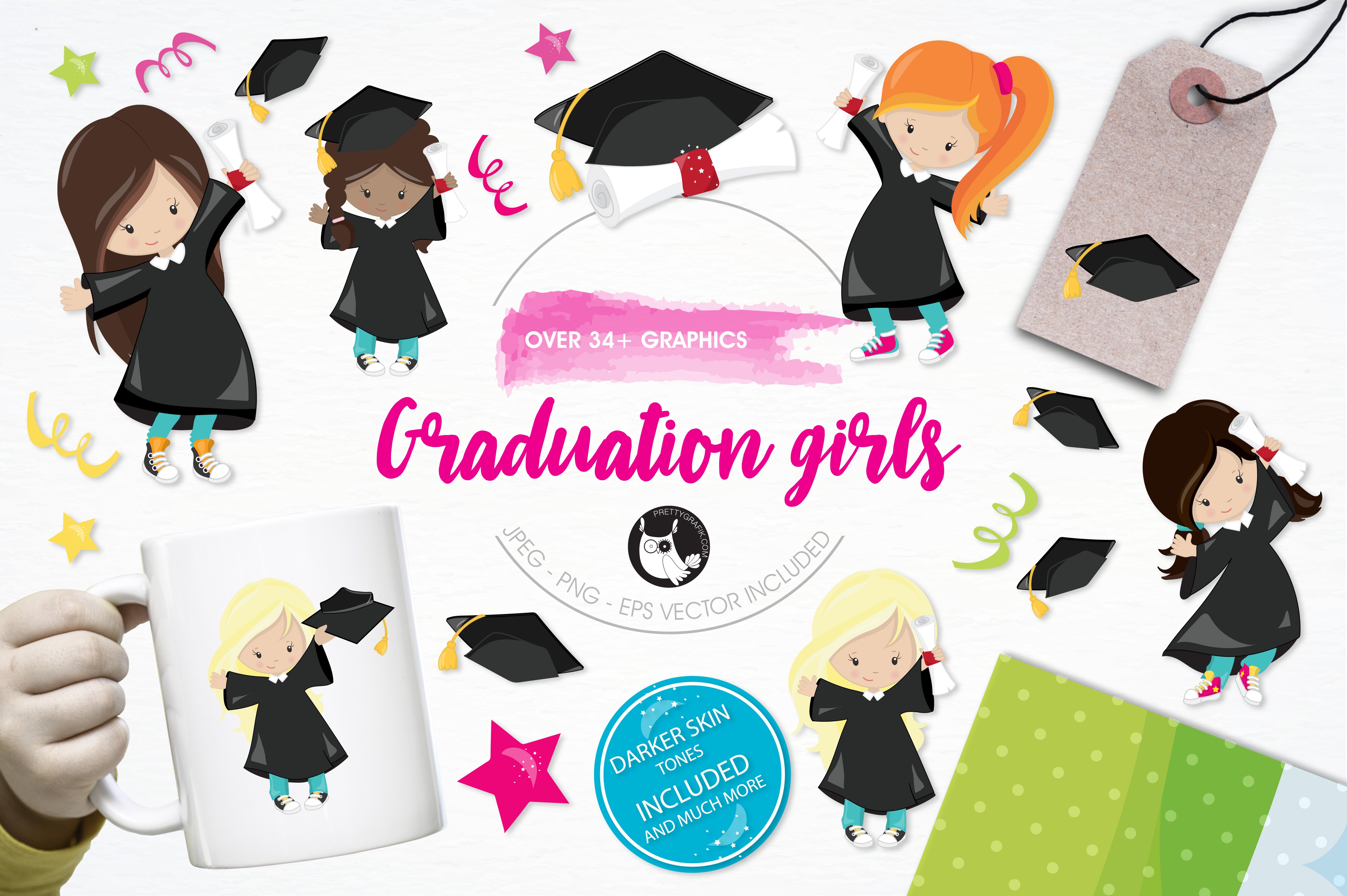 Download Vector "Graduation girls illustration pack - Vector Image" / Graduation girls illustration pack - Vector Image - Vector на тему графика illustration,kids,vector,graphics,clipart,clip art,school,icons,graduation,eps,prettygrafik,girls,diploma