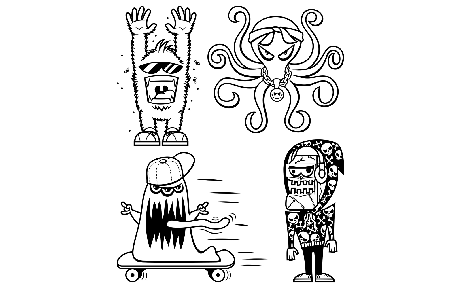 Download Иллюстрация "Graffiti Monsters Line Art - Illustration" / Graffiti Monsters Line Art - Illustration - Иллюстрация на тему графика monster,creature,character,freak,scary,cartoon,mascot,graffiti,sticker,rap,swag,underground,street,culture,gangster,doodle,line art,coloring,book,page