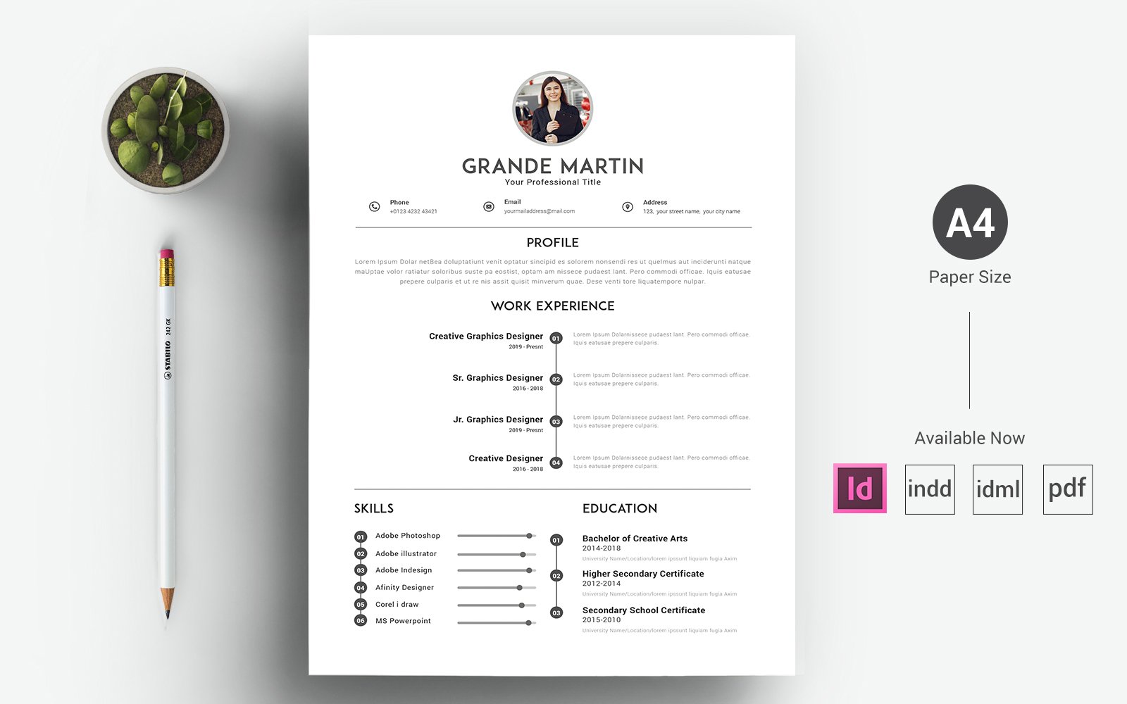 Download Резюме "Grande Martin - CV & Resume Template" / Grande Martin - CV & Resume Template - Резюме на тему графика a4,bright,clean,cv,cover letter,creative,curriculum vitae,design,template,docx,editable,elegant,job,light,minimal,modern,new,resume,indesign,indd resume