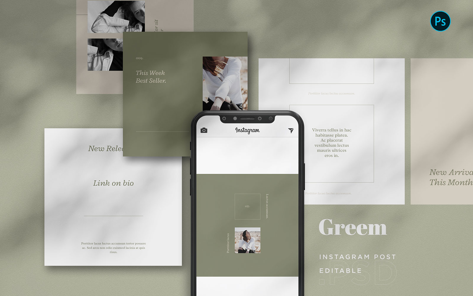 Download Шаблон для соцсетей "Greem - Fashion Instagram BL Social Media Template" / Greem - Fashion Instagram BL Social Media Template - Шаблон для соцсетей на тему графика greem,fashion,minimalist,stylish,feminine,instagram,post,feed,promotion,product,apparel,quote,services,business,company,story,package