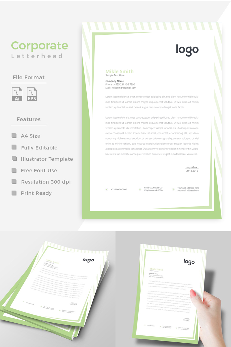 Download Фирменный стиль "Green Colour Creative Letterhead - Corporate Identity Template" / Green Colour Creative Letterhead - Corporate Identity Template - Фирменный стиль на тему графика simply graphics template clean professional illustration logo style letter corporate print layout creative abstract corporation contract business letterhead headline vector