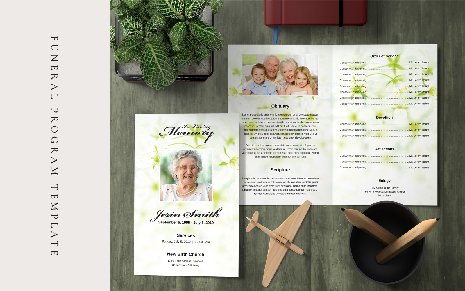 Download Фирменный стиль "Green Flower Funeral Program - Corporate Identity Template" / Green Flower Funeral Program - Corporate Identity Template - Фирменный стиль на тему графика funeral program,program template,obituary template,poem template,celebration of life,memorial program,dove funeral,order of service,time of loss,men funeral,women funeral african american,af