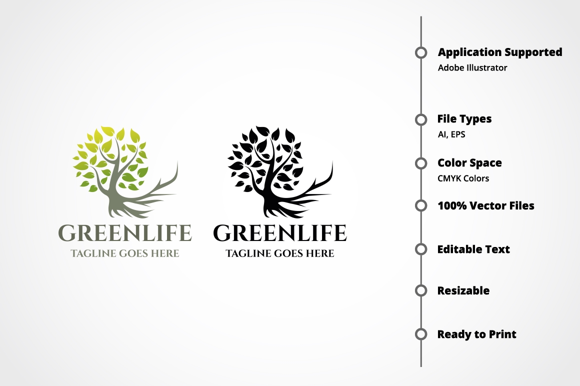 Download Шаблон логотипа "Green Life Logo Template" / Green Life Logo Template - Шаблон логотипа на тему графика agriculture logo,badge,bio,botany,branch,branches,classic,creative concept,farm logo,fertility,food,garden,gardening logo,growth,holistic logo,landscape,natural logo,nature,nutrition logo,oak