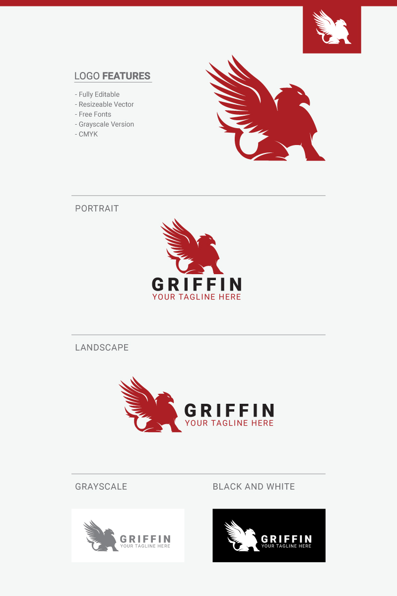 Download Шаблон логотипа "Griffin Logo Template" / Griffin Logo Template - Шаблон логотипа на тему графика animal animal logo arms army badge blazon classical crest crown griffin harmony knight label leadership lion majestic medieval men fashion