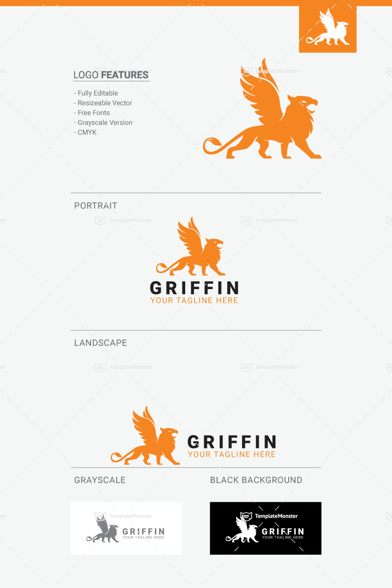 Download Шаблон логотипа "Griffin Logo Template" / Griffin Logo Template - Шаблон логотипа на тему графика animal black business classic clean eagle elegant financial gryphon hotel icon king lawyer legal lion logo logotype luxury management mascot