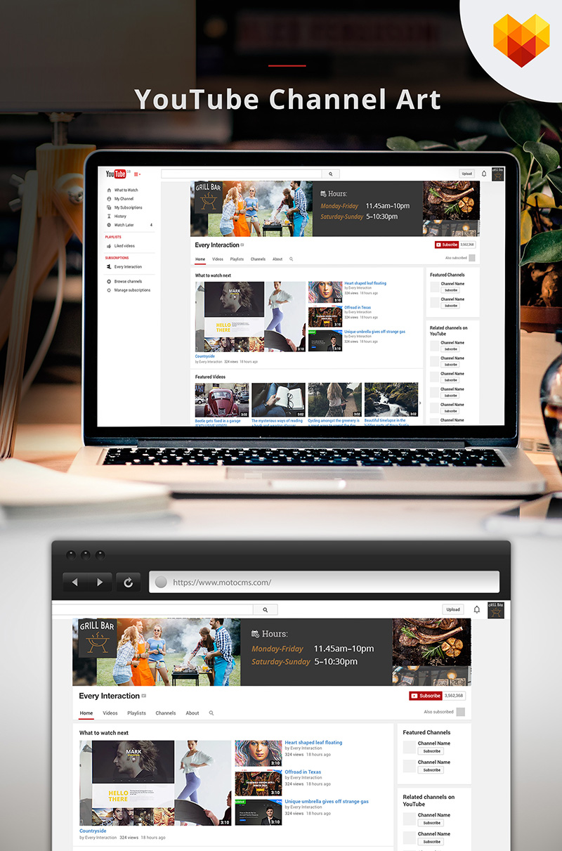 Download Шаблон для соцсетей "Grill Bar Youtube Channel Art Social Media Template" / Grill Bar Youtube Channel Art Social Media Template - Шаблон для соцсетей на тему графика media social logo avatar design youtube graphics grill bar
