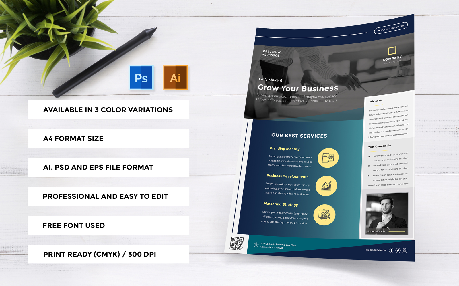 Download Фирменный стиль "Grow Business - Creative Multipurpose Flyer - Corporate Identity Template" / Grow Business - Creative Multipurpose Flyer - Corporate Identity Template - Фирменный стиль на тему графика agency,business,clean,company,corporate,creative,elegant,enterprise,entrepreneur,marketing,minimalist,modern,professional,simple,unique,advertisement,property,broker,blue,services
