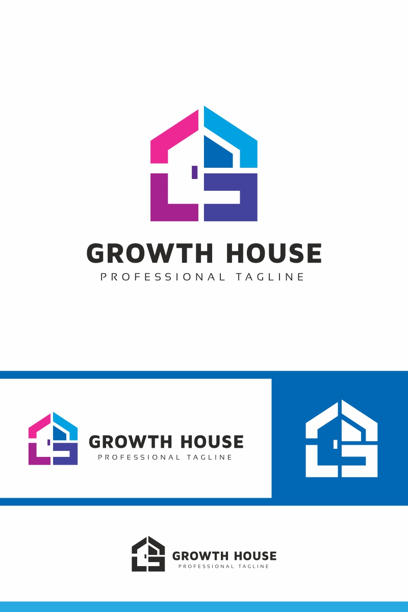 Download Шаблон логотипа "Growth House G Letter Logo Template" / Growth House G Letter Logo Template - Шаблон логотипа на тему графика g letter alphabet black blue box character characters clean estate globe growth home house housing in logo professional real red