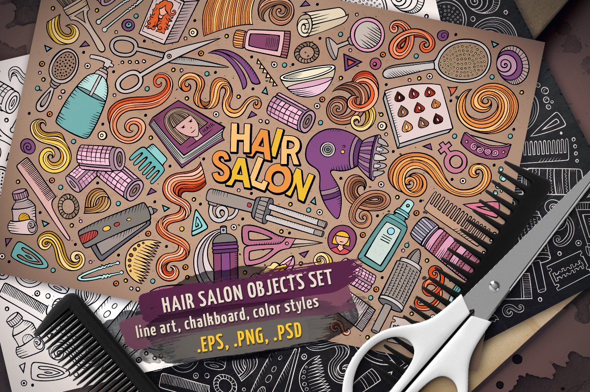 Download Vector "Hair Salon Objects & Elements Set - Vector Image" / Hair Salon Objects & Elements Set - Vector Image - Vector на тему графика brush,paint,fun,swirls,vintage,hand-drawn,bundle,sign,retro,fashion,doodles,decorative,vector,beauty,cosmetic,collection,female,clipart,abstract,style,barbershop,clip art,professional,png,psd
