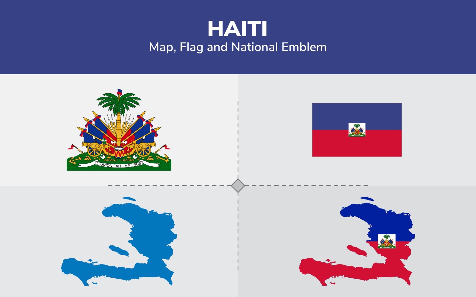 Download Иллюстрация "Haiti Map, Flag and National Emblem - Illustration" / Haiti Map, Flag and National Emblem - Illustration - Иллюстрация на тему графика continents,countries,map,political map,traveling,vector,emblem,national,flag,coat,arms,country,symbol,nations,state,sign,nation,badge,symbolic object,europe