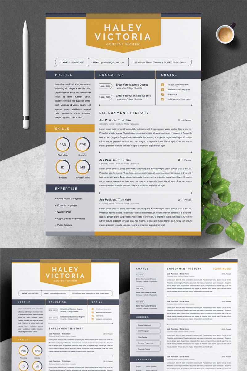 Download Резюме "Haley Resume Template" / Haley Resume Template - Резюме на тему графика 1 page cv resume 2 3 apple clean cover letter curriculum vitae template illustrator eps mac pages microsoft word minimal
