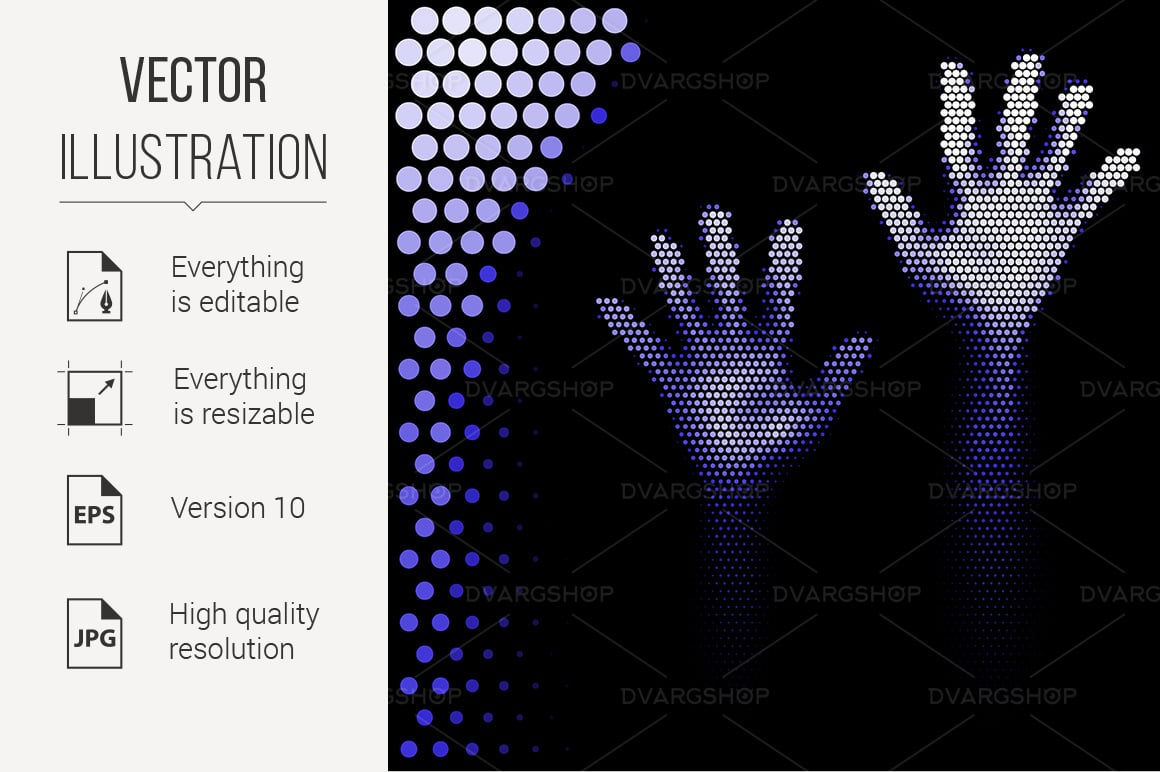 Download Vector "Halftone Hands Silhouette - Vector Image" / Halftone Hands Silhouette - Vector Image - Vector на тему графика halftone,silhouette,background,style,help,fright,circle,mystery,stop,ghost,depressed,lonely,horror,frustrate,psycho,afraid,black,stress,desperation,light