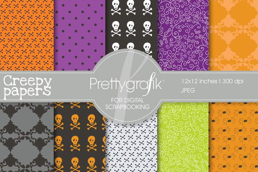 Download Vector "Halloween Digital Papers Scrapbook - Vector Image" / Halloween Digital Papers Scrapbook - Vector Image - Vector на тему графика scrapbooking,skull,bones,patterns,digital papers,digital art,digital scrapbooking,spiders