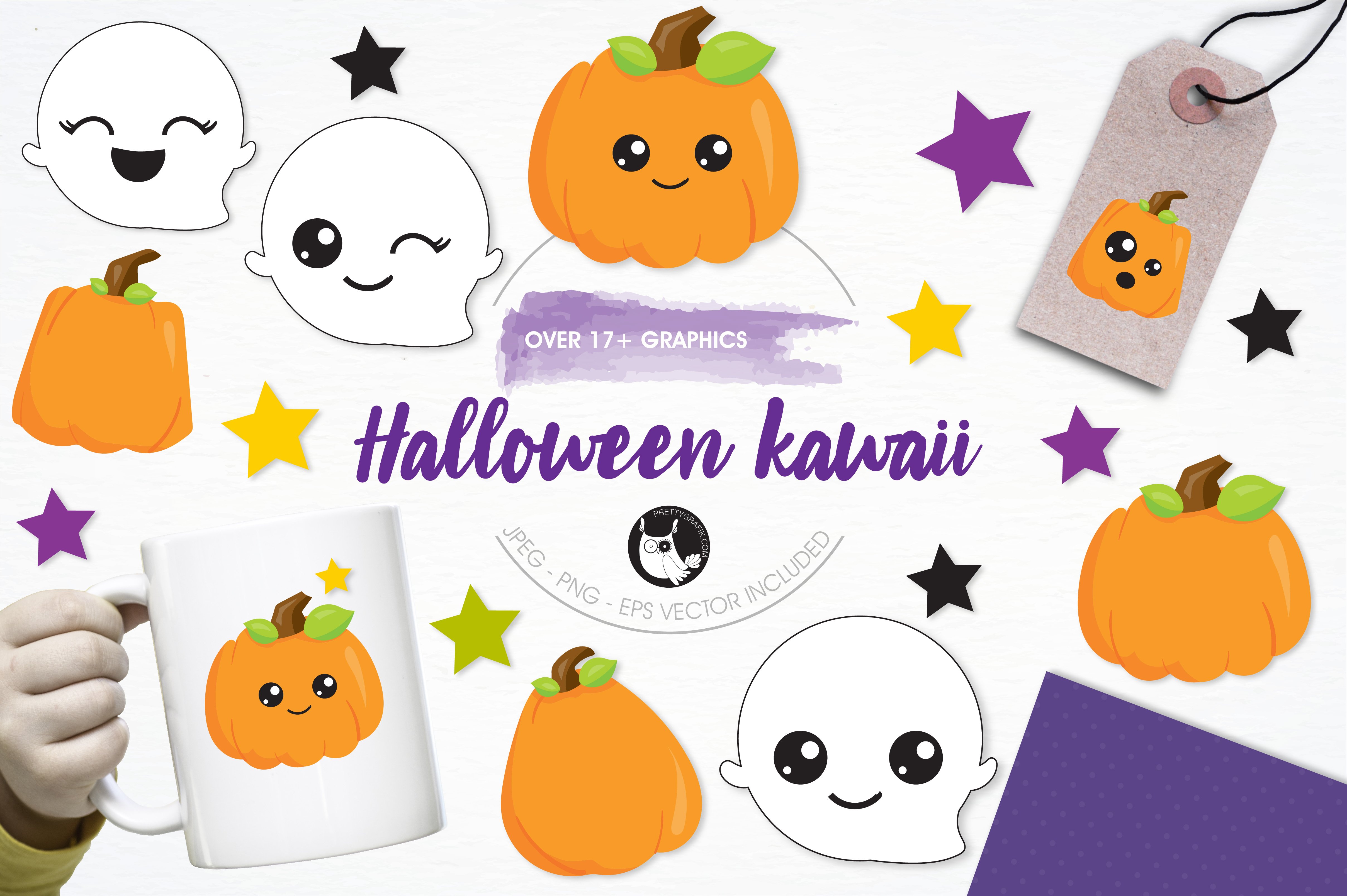 Download Vector "Halloween Kawaii Illustration Pack - Vector Image" / Halloween Kawaii Illustration Pack - Vector Image - Vector на тему графика illustration,vector,graphics,clipart,clip art,icons,halloween,ghosts,pumpkin,kawaii,eps,prettygrafik,jack olantern