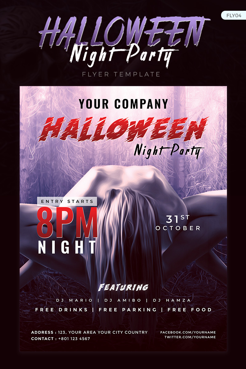 Download Фирменный стиль "Halloween Night Party Flyer - Corporate Identity Template" / Halloween Night Party Flyer - Corporate Identity Template - Фирменный стиль на тему графика party clubnight club print flyer poster design witch pumpkin scary horror invitation flyer-template graphic spooky bat pub disc discount halloween