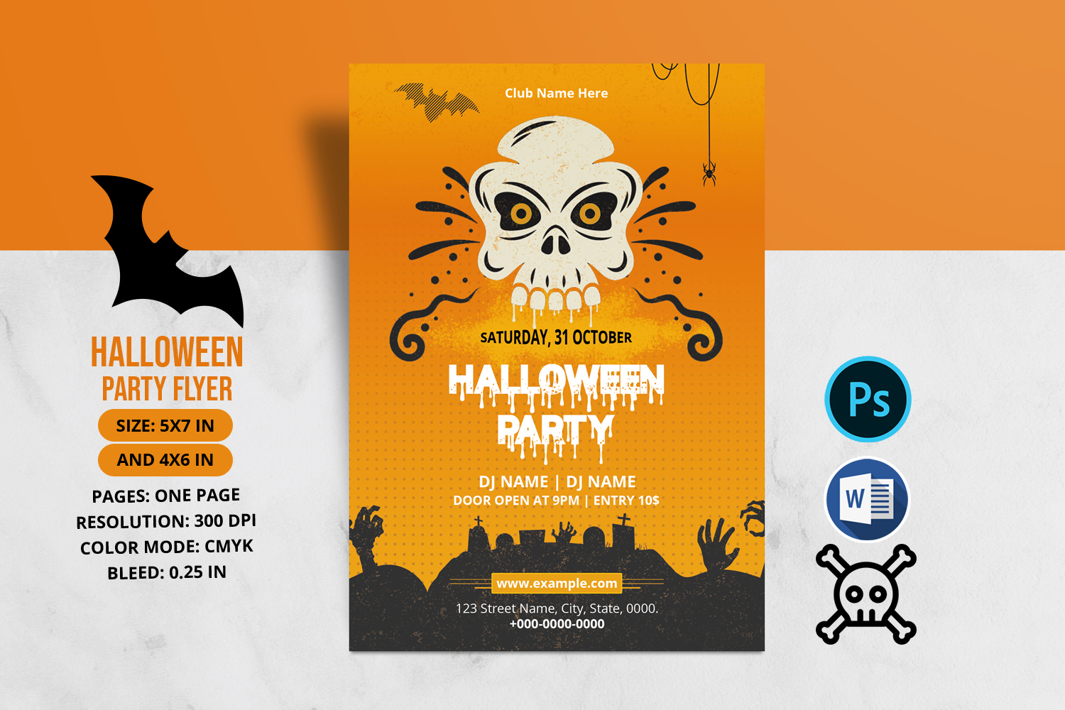 Download Фирменный стиль "Halloween Party Flyer - Corporate Identity Template" / Halloween Party Flyer - Corporate Identity Template - Фирменный стиль на тему графика halloween party flyer,halloween flyer,flyer template,halloween invitation,invitation template,printable,ms word template,photoshop template,club,halloween 2021