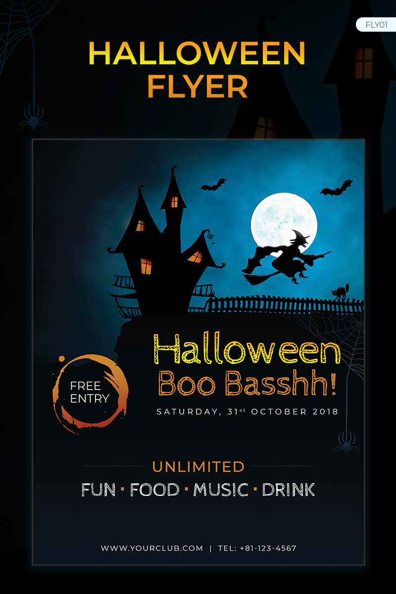 Download Фирменный стиль "Halloween Party Flyer - Corporate Identity Template" / Halloween Party Flyer - Corporate Identity Template - Фирменный стиль на тему графика halloween party clubnight club print flyer poster design witch pumpkin scary horror invitation flyer-template graphic spooky bat pub disc discount